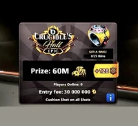 Game rooms are locations in which the player can choose from in order to challenge other online opponents. One of the numerous aspects of the game rooms is the ability to select areas and territories to compete in online matches in order to accumulate and acquire Pool coins, the virtual currency of 8 Ball Pool. Game Rooms - or, more specifically, online matches - are accessed by clicking on the "Play 1 Vs 1" icon on the home screen. An additional aspect of the game rooms is the ability to compete in tournaments, a sequence of 3 online matches which allow the player to acquire higher amounts of coins and receive achievements and cue prizes.[note 1]
